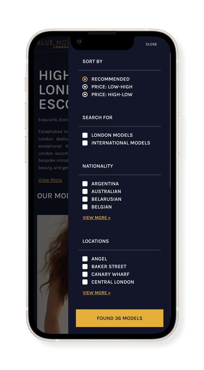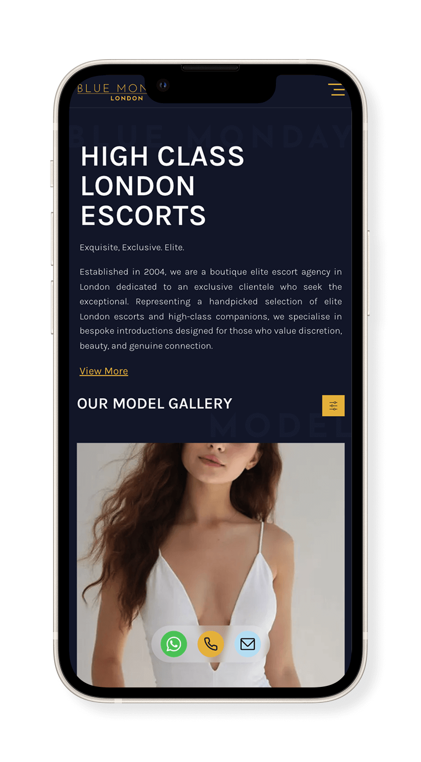 Blue Monday has been running since 2004, but it wasn’t until it enlisted AC’s escort web design and escort SEO services that its rankings and bookings went up. Providing high-class companionship services, we gave Blue Monday an updated and elite aesthetic that reflects the clientele it wanted to attract.