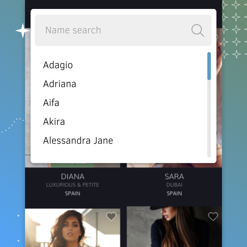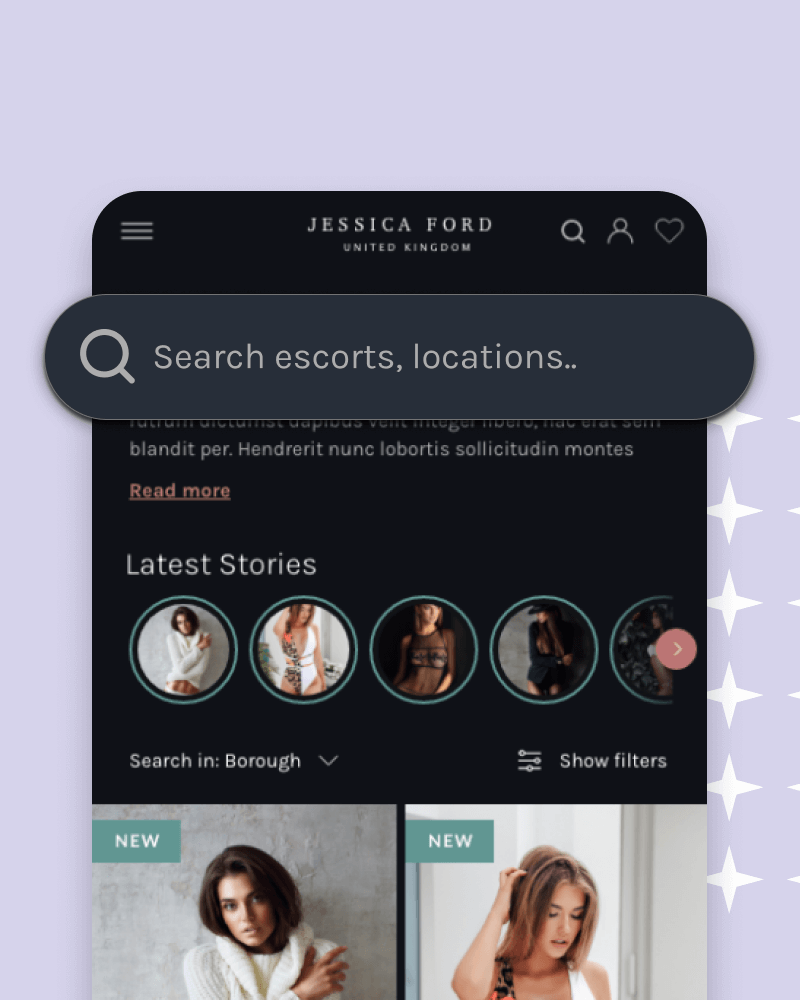 Give your users the opportunity to search for the exact body type, location or service they require with the search bar.